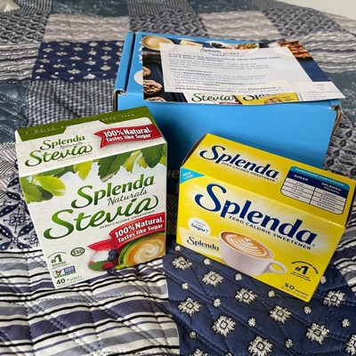 [This review was collected as part of a promotion.] #Complimentary #SplendaSwaps @Influenster @Splenda #influenster #Productreviewer #voxbox Stevia Splenda tasted almost more like sugar than the yellow pkt of Splenda was my personal preference. Gluten free, zero calories, fat & sodium product. Splenda Sweetener Packets - 50 ct. Splenda Stevia Sweetener Packets - 40 ct.