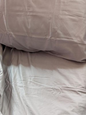 [This review was collected as part of a promotion.] This sheet set is made with a fabric of 800 count cotton blend . So it feels luxurious and silky, the color is a beautiful muted purple shade that complements my decor. Unfortunately we actively avoid synthetic and missed the fabric content. I however tested them and they feel silky, fit true to size even with a topper. The care will be super easy and durable. The quality is well made we just prefer a different fabric.
