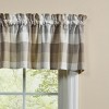 Embrace cozy character and comfortable neutrals with this classic patterned valance curtain. Intricately crafted in a timeless plaid design of subtle tan, beige, and white hues that brings a relaxing touch of versatile warmth to an everyday window setting. Features an unlined fabric and natural ruffling to offer a timeless look without having to redecorate an entire room that can be used by itself or paired with your favorite tier or curtain panel for a dynamic display. This cozy window treatment can be used time and time again in your favorite country chic, rustic traditional, modern farmhouse room decor, and more.