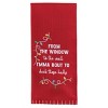 Add a dash of jolly holiday humor to your Christmas kitchen decor with the addition of this set of two funny seasonal dishtowels. These decorative tea towels feature a humorous holiday phrase embroidered with stitched multicolor string lights and a novelty bottom trim on a vibrant red fabric. Complete a Christmas gift or add in your own holiday kitchen decorations for a fun, festive twist! Crafted from soft cotton material, these winter dish towels provide a functional and stylish tool to utilize during everyday kitchen tasks. Simple to display on an oven handle or on a wall hook using the sewn-in tab. Perfect to amplify any winter farmhouse, seasonal primitive, cozy Christmas, rustic holiday decorations, and more.