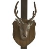 Utilize for the holiday season and beyond, the versatile animal sculpture design is perfect for a primitive touch to both seasonal winter and everyday entryway decorations. The heavy-duty metal deer head statement is perched against a traditional wood frame plaque, offering a realistic and rustic hanging door display that aesthetically holds a standard wreath. For hassle-free holiday decorating, simply set the square hook over the top of your door, then hang your favorite wreath arrangement using the bottom curved hook. Pair this stylish metal hook display with more timeless holiday home pieces from the rest of the Eva & Co. designer line collection for a modern farmhouse styled Christmas space.
