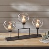 This distinctive multi votive candle display features a sleek modern design with 3 curved glass candle holders. Each removable candle holder accommodates one votive or tealight. This decorate piece can be display on any table or mantel with any home decor style. Perfect to used outdoors to illuminate your patio living space.