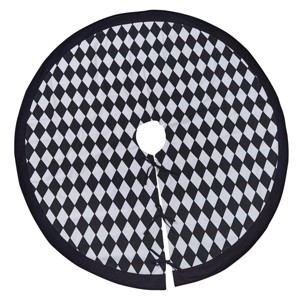 Add a modern and chic twist to your festive home with this trendy Harlequin Tree Skirt. The black and white diamond pattern with a black border creates the perfect holiday backdrop to add a convenient and unique charm in your Christmas tree seasonal decor year after year. This winter season treat your living room or entryway space to a durable, circular tree base staple that will be celebrated with for years to come.