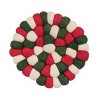Add texture and visual interest to your holiday kitchen or dining room setting with this functional hot pad set of three. The classic red, green, and white hues of the festive season brings a relaxing touch of versatile subtlety to your space, making it a stylish essential in any Christmas, winter, or holiday decor. Made of thick, wool balls that protect your dining table and kitchen counters from heat damage or water circles while hosting a dinner party or completing daily tasks like cooking, cleaning, or baking. This reliable tabletop tool makes every meal and party gathering a joyful experience while providing reliable protection and a decorative accent to boho and fall decor.