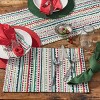 Create a magical holiday atmosphere by including this colorful dishtowel into your seasonal interior kitchen decor. The fun print displays a variety of dot and stripe lines in rich red, green and cream hues. This tea towel is a practical and stylish Christmas statement to use in various home settings throughout the winter season or thoughtful gift to someone special.