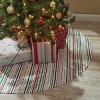 Add a traditional and chic twist to your festive home with this classic Jingle Jangle Tree Skirt in a stripe and dotted pattern. The red and green design on a cream base with tie-able red ribbons creates the perfect holiday backdrop to add a convenient and unique charm in your Christmas tree seasonal decor year after year. This winter season treat your living room or entryway space to a durable, circular tree base staple to be celebrated with for years to come.