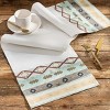 A stylish combination of subtle shapes and chic colors with this abstract table runner! Each end features a multi-stripe print with various geometric designs including fun florals, rhombus diamonds, and arrows. Excellently stitched with a standard one inch hem for a tidy, neat appearance perfect to spruce up any tablescape space. This patterned dinner mat elegantly elevates a casual or formal dinner arrangement to place as a beautiful centerpiece base. Constructed of a high quality cotton material that effortlessly combines aesthetic appeal with functionality by offering an absorbent protective surface that will help block potential scuffs or spillages from leaving lasting impacts on your tabletop surface. Perfect to pair with cozy farmhouse, cottage, contemporary, country chic, or boho decor!
