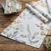Soft, subtle hues gracefully blossom into a chic plant pattern for a trendy flair in any table setting. This nature patterned table runner features an intricately detailed design of delicately flowering eucalyptus and other plants in refreshing green, orange, and blue hues; perfect for creating a serene atmosphere all year round. The cozy colorway and beautiful botanicals makes this decorative tabletop mat great for adding a fresh and casual feel to your home space. Soft and absorbent to the touch, this reusable table topper is constructed of premium cotton material that makes it well-suited to both every day and special occasion meals. Utilize this kitchen textile accent on its own as a centerpiece or create a wonderful dinner arrangement with various decorative table accents that will elegantly elevate a spring farmhouse, country chic, summer, cottagecore, or whimsical boho tablescape.