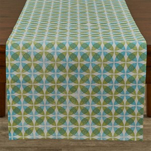 Provide a vibrant pop of color to your dining room by introducing this beautiful blue and green color palette. The unique overlapping design brightens the surrounding area and goes well with a variety of interior styles for spring or summer get-togethers. Reuse this table runner to both protect your surfaces or dinner table from any potential scratches while also providing a stylish addition to your home decor.