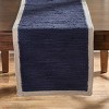 Add depth and subtle texture to any tablescape with this versatile table runner. Thickly woven with cotton and polyester material, the solid color design and border cream accent combines for a comfortable boho vibe to complement a variety of interior decor styles including modern farmhouse, Christmas, cottagecore and more. The textured surface provides a protective barrier to a tabletop surface from potential spills and messes created during casual or formal meals in everyday and holiday settings. Functional and aesthetic to elevate a casual or formal dinner arrangement to showcase beautiful tableware including dinner plates, cutlery, and glassware.