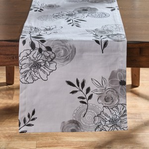 Create a contemporary chic dining room space with the beautiful botanicals on this printed table runner. The neutral monochrome color palette in black, gray, and white hues combined with the outlined flowers and modern medallion icons makes this tabletop cover versatile to complement various decor styles including chic, modern farmhouse, contemporary, and more. This stylish table linen is constructed with durable and long-lasting 100% premium cotton material that will provide a protective barrier to a tabletop surface from potential spills and messes created during casual or formal meals.