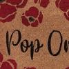 Funny and full of fantastic florals! Charmingly decorate your everyday porch entryway with a whimsical red poppy flower print paired by the fun pun, 'Pop On In,' that will cheerfully welcome guests and loved ones into your home space. This summer welcome mat provides the perfect solution to prevent dirt from tracking into your home while also decorating your porch or door area with a new stylish flooring accessory. Brightens any summer or spring porch decor with an inviting tone of vibrant warmth and countryside comfort from its botanical nature design. Use by itself or enhance with depth and dimension by placing a larger rug underneath.
