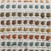 Adding unique interest and dimension, this textured table runner will become a statement tabletop piece that won't go out of style. Intricately woven with a combination of alternating olive green, honey yellow, rustic orange, and slate blue chindi rag cloths charmingly highlighted against the white base construction. This earthy color palette introduces an iconic and vintage aesthetic to perfectly complement midcentury modern, groovy eclectic, and retro boho home decorations. The durable tightly woven construction provides a protective barrier to a tabletop surface from potential spills and messes created during casual or formal meals.