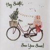 Bringing beachside beauty, this set of two decorative tea towels highlights the holiday season with a seaside twist. Complete your coastal Christmas decor with these patterned dish towels featuring a subtle seasonal scene of a bike, complete with a background of seagulls paired by a seashell garland draped between Christmas presents and a mini winter fir tree. The cozy printed design is accented by an embroidered pun in festive green thread, 'Hey Santa, sea you soon!' Easily incorporate into seasonal winter and festive Christmas decor or provide the perfect gift to a loved one. Crafted from soft cotton material, these cloth tea towels offer a functional and stylish tool to efficiently utilize during everyday kitchen tasks.