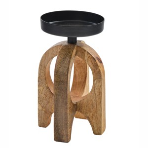 - Durable Construction: Crafted of quality wood and durable metal construction that has a sturdy four-legged base to functionally hold a standard pillar candle. The round candle tray features taller sides that is purposefully crafted to capture and contain melted wax, helping to prevent drips and maintain a cleaner candle display.