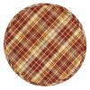 Embrace the fall season with the bold colors and timeless pattern that this round placemat set of four offers. Features a quilted design with a rustic red, yellow, and white plaid pattern for an everyday or seasonal tabletop addition to introduce in primitive table decor and autumn dining room decorations. The circular design takes up less tabletop space that brings functional and aesthetic details perfect to elevate a feast, casual or formal dinner arrangement to showcase beautiful tableware including dinner plates, cutlery, and glassware. These reusable dinner mats are durably woven on premium cotton fabric with an absorbent protective surface that will help block potential scuffs or spillages from leaving lasting impacts on your tabletop surface.
