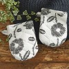 Modern farmhouse meets contemporary design with this black and white flower mini mitt set of two. Showcases a detailed nature pattern in a timeless black and white color palette for a comfortable urban kitchen setting. Easy to store when not in use, the convenient hanging loop feature allows this kitchen essential to display on a wall hook for quick accessibility when cooking while also keeping your countertop space clear. Crafted from high-quality cotton material, offering reliable heat protection to handle hot dishes, pots, and pans with confidence and safety.