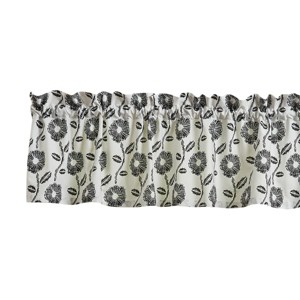 Modern farmhouse meets contemporary design with this black and white flower valance curtain. Showcases a detailed nature pattern in a timeless black and white color palette for a comfortable urban room setting. Delicately frames a window space and softens outdoor lighting to create a comfortable, cozy ambiance. Whether placed in the kitchen, living room, bedroom, or beyond, this patterned valance adds a touch of contemporary flair to any interior. The natural ruffling of the fabric at the top paired with its chic design will create a stylish look without having to redecorate an entire room.