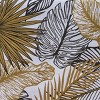 Complete with contemporary chic charm! Full of fun foliage, gorgeous golds highlight against the neutral black and white background with a printed design of ferns and tropical plants. Soft and absorbent to the touch, this reusable table topper is constructed of premium cotton material with seamless mitered corners that makes it well-suited to both every day and special occasion meals. Utilize this patterned kitchen textile accent on its own as a centerpiece or create a wonderful dinner arrangement with various decorative table accents that will elegantly elevate bohemian, contemporary, chic, jungle, safari, or tropical table decor.