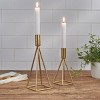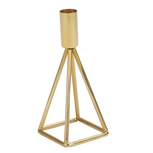 Introduce a radiant glow to your space with our wonderfully crafted short Triangle Taper Holder. Great for making any occasion extra special, this taper holder is perfect for creating an elegant or romantic atmosphere in your home. Showcasing a bold golden silhouette, this accent piece can be placed on your dining table, windowsill, mantel or end table. Make a lovely statement by pairing this with our matching pieces or arrange it with an assortment of decorative pieces for a compelling display in any room.