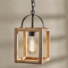 This natural wood pendant light adds an urban farmhouse appeal and warm, ambient lighting to your interior space. Wooden frame construction with gorgeous matte black accents for a versatile and stylish accent to softly illuminate a kitchen, dining room or bedroom space. With 3 feet of adjustable chain combined by 7 feet of cording and a coordinating ceiling plate, this hanging light pendant can be easily hard wired to any desired ceiling. Pair this rustic ceiling light with a 60 Watt bulb for full effect, not included.