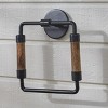 Provide a stylish, rustic touch to your modern farmhouse bathroom decor while also adding a functional wall-mounted storage option with this industrial chic towel ring. Composed of wood and durable black metal, this decorative towel ring hook will add a charming touch to a kitchen or bathroom setting. The compact design provides plenty of storage area while taking up minimal space in already crowded or small bathrooms to display hand towels, kitchen cloths and more.