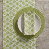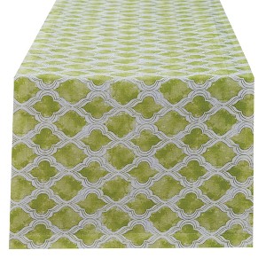 A geometric pattern with lime green hues in a soft watercolor design. This Moroccan styled print provides a warm and inviting tabletop area for a vibrant summer dining setting. Its reusable cloth feature allows for a casual everyday accent piece or a seasonal addition that will help provide a protective barrier to the dedicated tabletop surface from daily wear and tear. Simply style this geometric patterned table runner by positioning it along the length of the desired surface, then further decorate to your liking. This fabric dinner mat is the perfect addition to any chic, tropical, summer home decor, and more.
