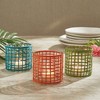 - The Weave Votive Candle Holder Set includes two stunning orange holders that are perfect for adding a pop of color to any space.