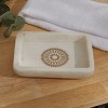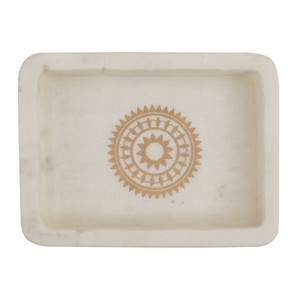 Add an instant modern look to your sink area with the Zuri Soap Dish. Constructed from natural soapstone for long-lasting use, this beautiful countertop or tabletop dish features a printed medallion design in a metallic gold finish. Provides a stylish yet practical base to display your favorite bar of soap. Expertly designed with raised edges to help keep your bar soap secure in place. Perfect to add in your everyday kitchen sink or bathroom vanity space. Pair with coordinating pieces for a complete, cohesive chic look.