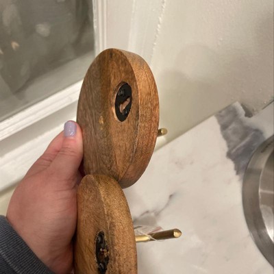 Product Name: 2 Contemporary Inspired Wooden Medallion Towel Hooks