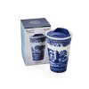 Spode Blue Italian 8oz Porcelain Travel Mug with Lid – Scenic Patterned Drinkware with Decorative Border - Portable Ceramic Coffee Cup