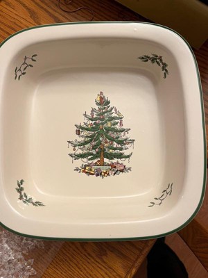 - Celebrate Holiday Traditions: Welcome the festive season with the Spode Christmas Tree Square Baker. Featuring the classic green-banded Christmas tree design, this 10-inch porcelain dish has been part of holiday tables since 1938.