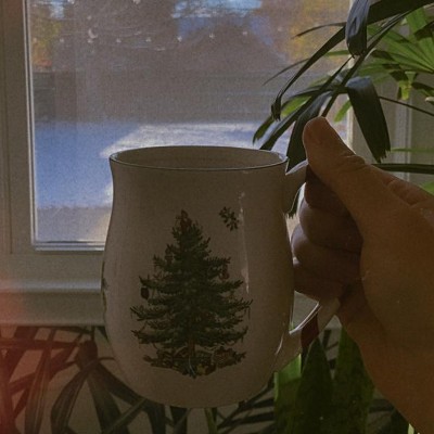 Product Name: Spode Christmas Tree 14 oz Holiday Mugs (Set of 4) - Festive Coffee Cups with Peppermint Candy Cane Handle, Stoneware Christmas Drinkware
