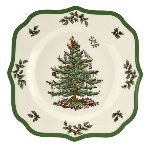 Product Name: Spode Christmas Tree Scalloped Salad Plate - Holiday-Themed Stoneware Appetizer Plate - 9 Inch Christmas Dinner Dish - Dishwasher & Microwave Safe