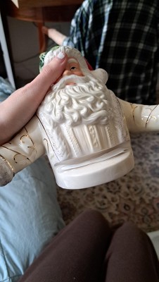 - Festive Holiday Décor: The 12.25-inch Figural Santa Dish is a delightful addition to any holiday décor or mantel display. Featuring a detailed white Santa and gold-trimmed accents, it is an eye-catching piece to serve candy or seasonal treats.