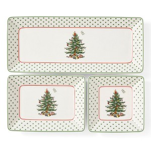 Product Name: Spode Christmas Tree 3-Piece Dessert Trays, Polka Dot - Holiday Dinnerware & Decorative Nesting Trays, Holiday Winter Serving