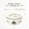 Designed to meet modern kitchen needs, the Spode Christmas Tree casserole dish is microwave, oven, freezer, and dishwasher safe, allowing for a wide range of uses. You can bake your favorite holiday dishes, reheat leftovers, or store them in the freezer, all with ease. Cleanup is quick, thanks to its dishwasher-safe design. The 2.5-quart capacity ensures ample space for serving family-sized portions, while the covered design keeps your food warm and fresh. This piece of holiday serveware not only adds a festive flair to your table but also makes a wonderful gift for friends and family who cherish holiday traditions. Whether you’re adding it to your own Christmas bakeware collection or gifting it to a loved one, the Spode Christmas Tree casserole dish is a classic choice that will enhance your holiday celebrations year after year.