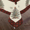 The Spode® Christmas Tree Tartan 52" x 70" Tablecloth features the iconic Christmas Trees around the drop of the cloth and bordered top and bottom by the red and green tartan plaid. Tossed mistletoe decorates the top. Printed on a heavyweight 100% polyester ivory cloth for easy care. Coordinating towels, rug, shower curtain, bath accessories, and table linens also available.