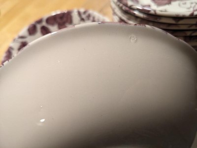 I bought 3 sets and there's a reason for the discounted price. These appear to be flawed pieces (seconds) that weren't identified as such. All twelve bowls have faults in the finish -- unsanded and unglazed bumps, divots, etc. Each bowl has around 3-6 flaws of this type.