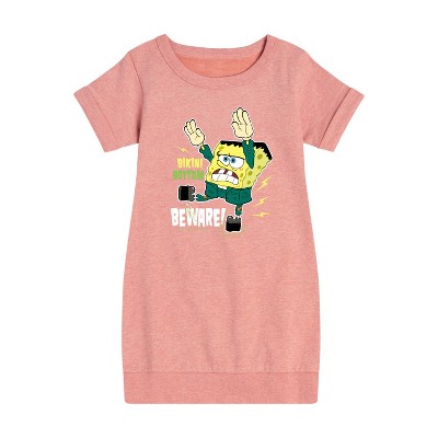 SpongeBob SquarePants - Bikini Bottom Beware - Toddler and Youth Girls A-line Dress - Dive into the fun of Bikini Bottom with SpongeBob SquarePants graphic apparel! Featuring colorful designs of SpongeBob, Patrick, Squidward, Sandy, and more, this collection brings the show's quirky humor and unforgettable moments to life. Perfect for fans of all ages, these pieces add a splash of personality to any wardrobe.