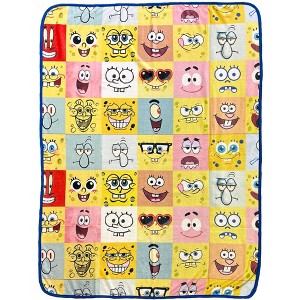 This SpongeBob SquarePants fleece throw blanket features a patchwork of expressive faces of SpongeBob, Patrick, Sandy, Squidward, Plankton, and Mr. Krabs. With styles ranging from sketch illustrations to adorable, baby-faced versions, and some wearing sunglasses, the design captures the playful spirit of each character. The blanket measures 45 by 60 inches, offering lightweight warmth and an eye-catching design whether used on a bed, a couch, or during relaxation. As one of the most recognizable animated series in TV history, SpongeBob SquarePants continues to connect with fans through its colorful cast and quirky humor. This throw provides longtime fans and new viewers a way to bring a little of Bikini Bottom into their everyday spaces.