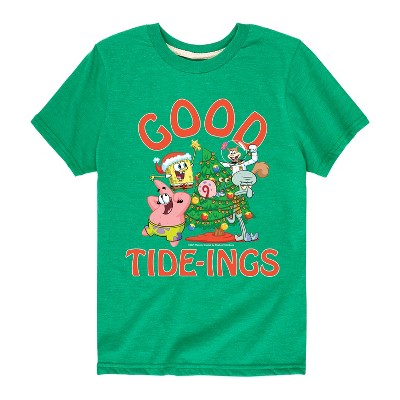 SpongeBob SquarePants - Good Tide Christmas - Men's Short Sleeve Graphic T-Shirt - Celebrate the essence of Nickelodeon's SpongeBob SquarePants with officially licensed apparel featuring unique designs crafted exclusively by Hybrid Apparel. Each piece brings beloved characters, iconic imagery, and memorable moments to life, offering SpongeBob SquarePants fans a one-of-a-kind way to showcase their passion.