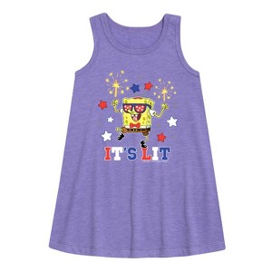 Girls' - SpongeBob SquarePants - It's Lit Graphic Sleeveless Aline Dress - 1 of 4
