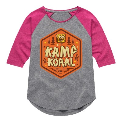 Girls' - SpongeBob SquarePants - Kamp Koral Kamp Koral Logo Badge Shirt Tail Raglan Graphic T-shirt