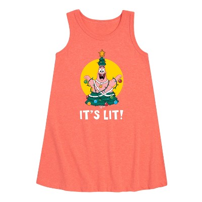 SpongeBob SquarePants - Lit Fireworks Patrick - Toddler & Youth Girls A-line Dress - Dive into the fun of Bikini Bottom with SpongeBob SquarePants graphic apparel! Featuring colorful designs of SpongeBob, Patrick, Squidward, Sandy, and more, this collection brings the show's quirky humor and unforgettable moments to life. Perfect for fans of all ages, these pieces add a splash of personality to any wardrobe.