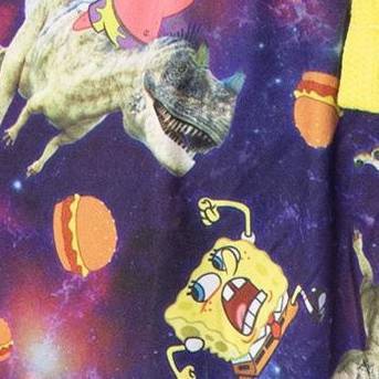 These are GREAT SpongeBob SquarePants lounge pants! SpongeBob SquarePants is a popular cartoon series that aired on Nickelodeon. With characters like Patrick, Star, Squidward, Sandy Cheeks, Plankton, Mr.Krabs, and Gary the Snail, it is hard not to love! These SpongeBob SquarePants adult lounge pants are extremely great with a new fabric blend style. The sleep pants have a magnificent allover design of Patrick riding a T-Rex, chasing SpongeBob through space with a Krabby Patty design here and there! It is made of a wonderful 92% polyester / 8% spandex fabric blend and has a drawstring waist closure.