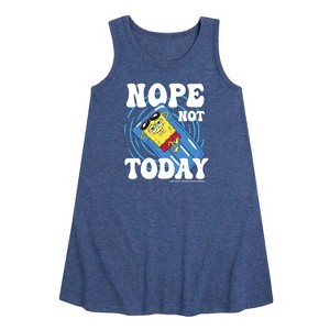 SpongeBob SquarePants - Nope Not Today - Toddler and Youth Girls A-Line Dress - Dive into the fun of Bikini Bottom with SpongeBob SquarePants graphic apparel! Featuring colorful designs of SpongeBob, Patrick, Squidward, Sandy, and more, this collection brings the show's quirky humor and unforgettable moments to life. Perfect for fans of all ages, these pieces add a splash of personality to any wardrobe.