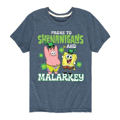 SpongeBob SquarePants - Prone To Shenanigans And Malarkey - Men's Short Sleeve Graphic T-Shirt - Dive into the fun of Bikini Bottom with SpongeBob SquarePants graphic apparel! Featuring colorful designs of SpongeBob, Patrick, Squidward, Sandy, and more, this collection brings the show's quirky humor and unforgettable moments to life. Perfect for fans of all ages, these pieces add a splash of personality to any wardrobe.
