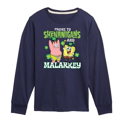 SpongeBob SquarePants - Prone To Shenanigans And Malarkey - Men's Short Sleeve Graphic T-Shirt - Dive into the fun of Bikini Bottom with SpongeBob SquarePants graphic apparel! Featuring colorful designs of SpongeBob, Patrick, Squidward, Sandy, and more, this collection brings the show's quirky humor and unforgettable moments to life. Perfect for fans of all ages, these pieces add a splash of personality to any wardrobe.
