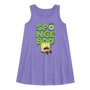 Girls' - SpongeBob SquarePants - Scardey Pants Graphic Sleeveless Aline Dress - 1 of 4